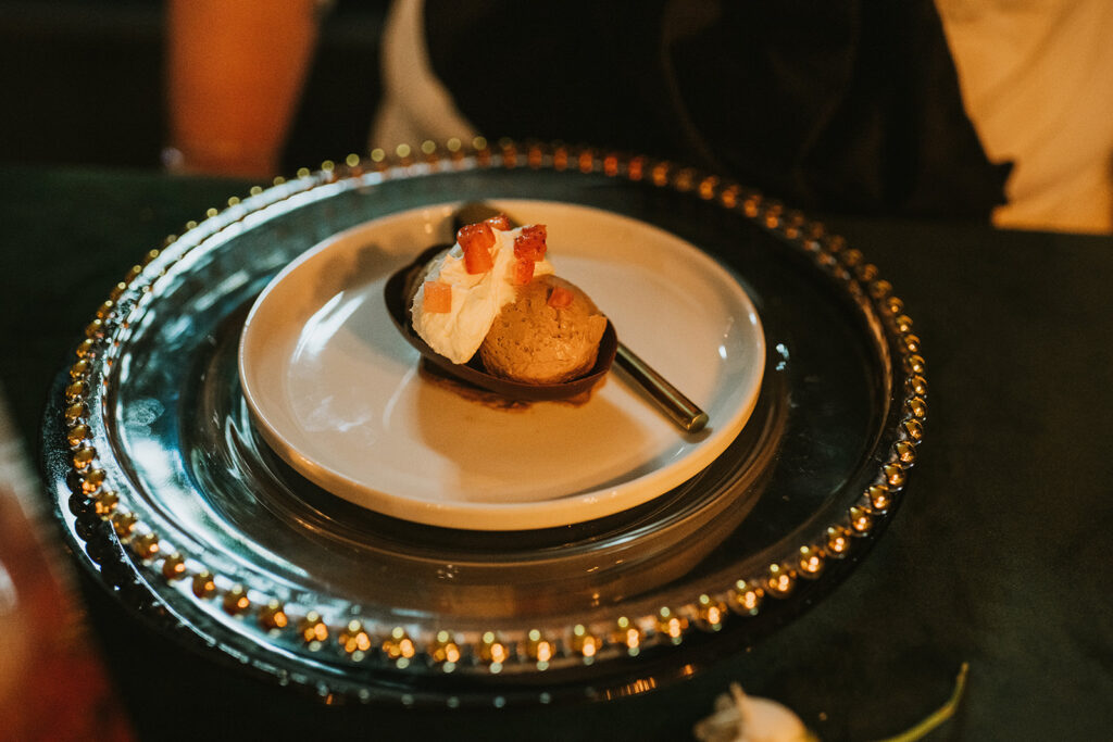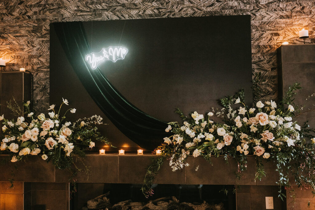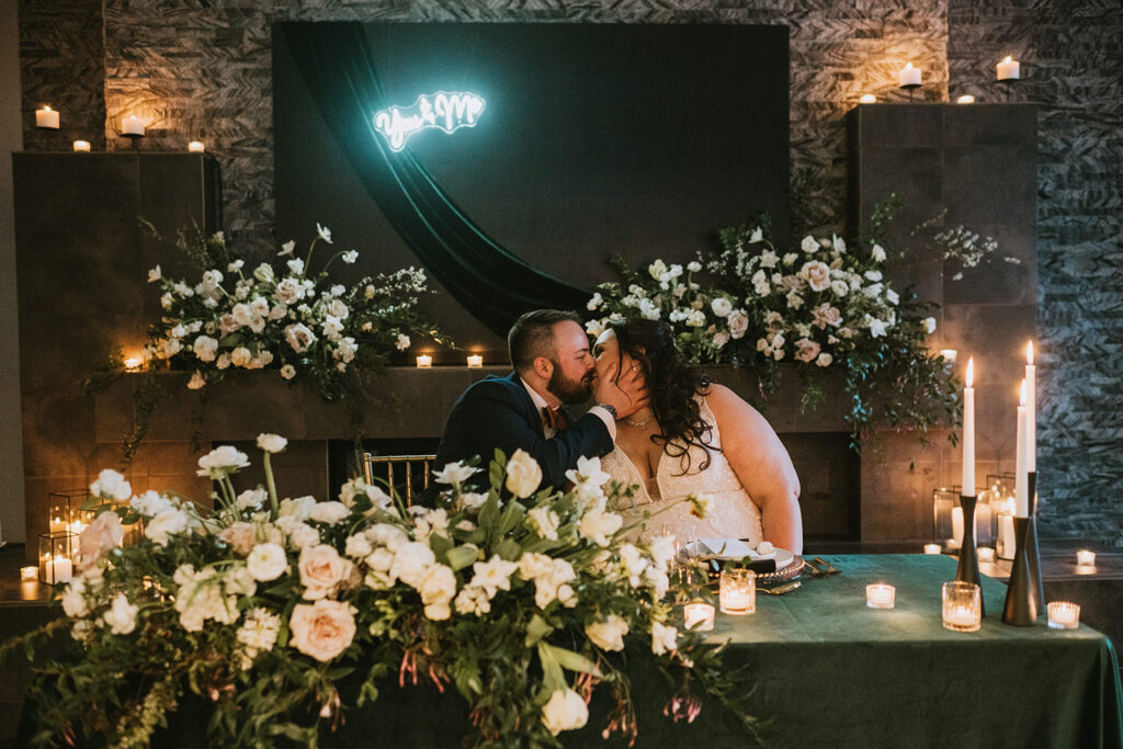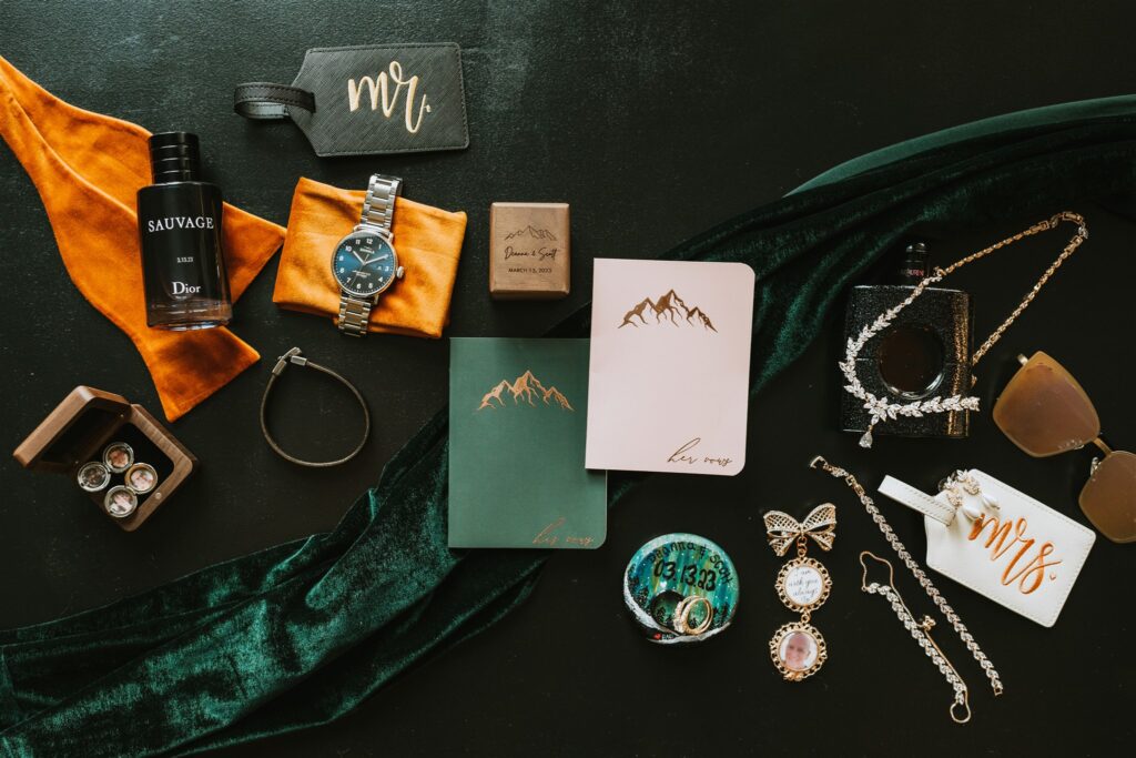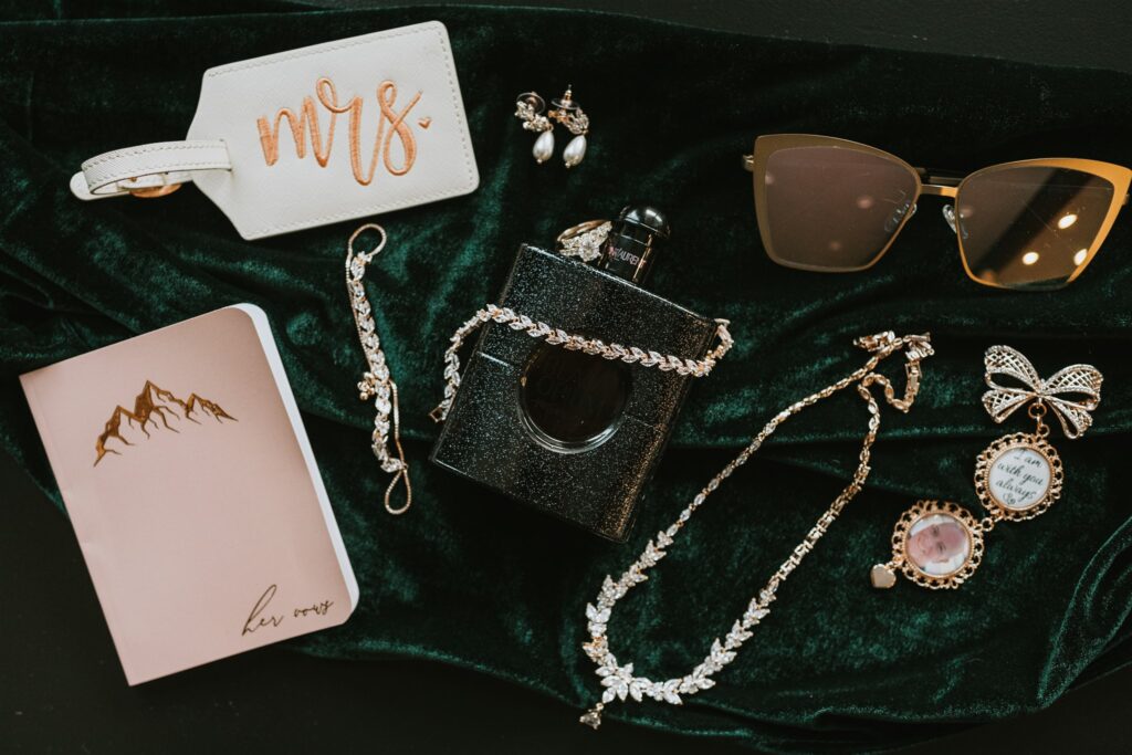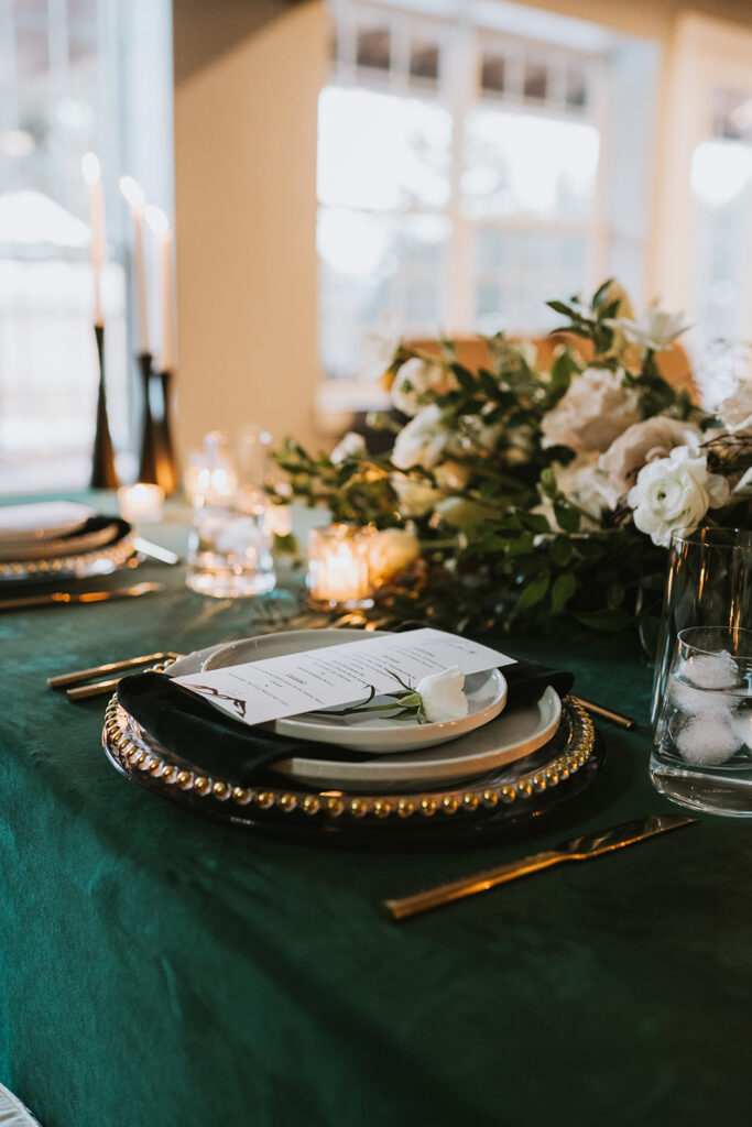 While Deanna and Scott were having their epic helicopter tour, we were back at the Airbnb setting up for their intimate dinner. Even though it was just the two of them, we wanted to make it as magical as a full wedding reception. The stunning florals from the ceremony continued along with a luxe green velvet linen. Then we added personal touches and romantic candlelight for a perfect evening.