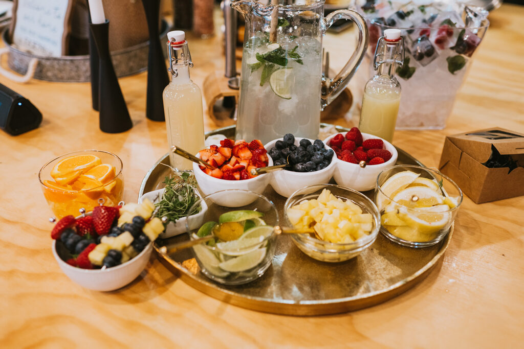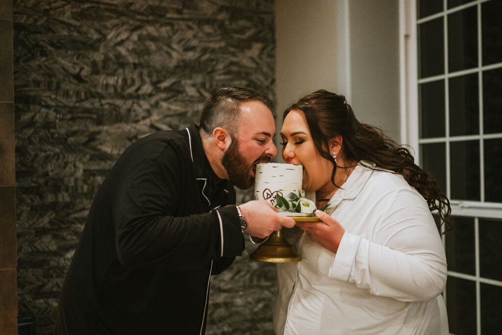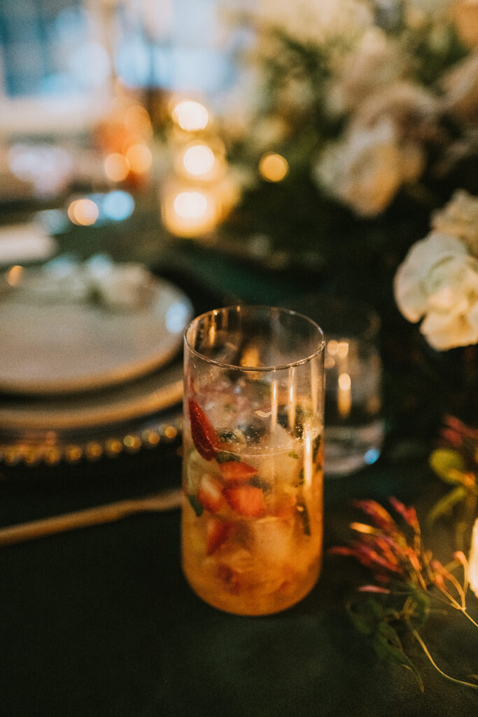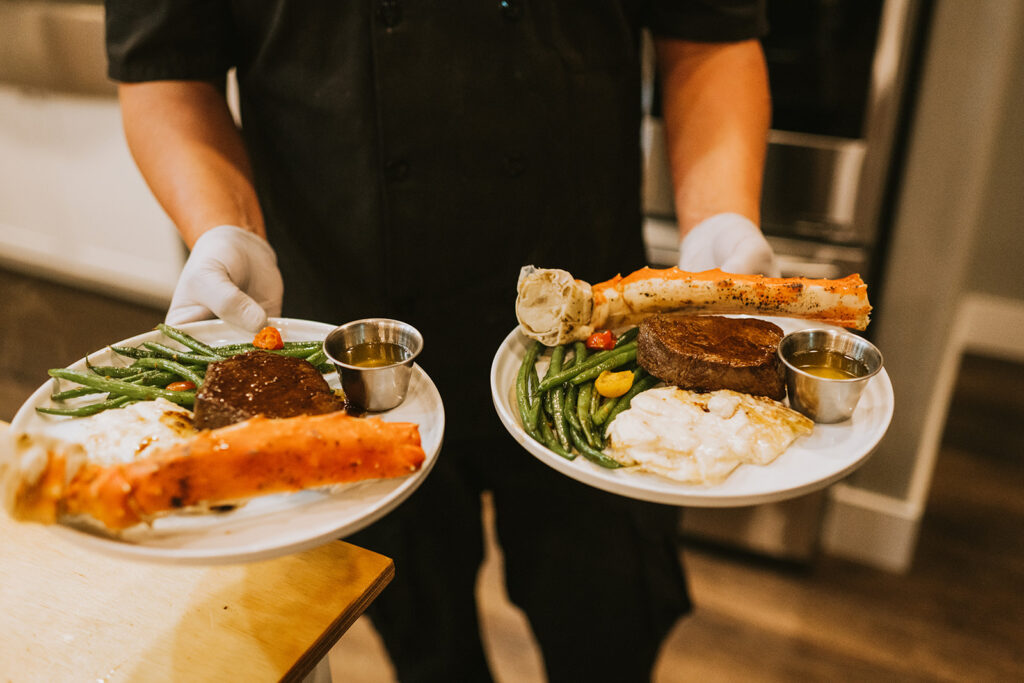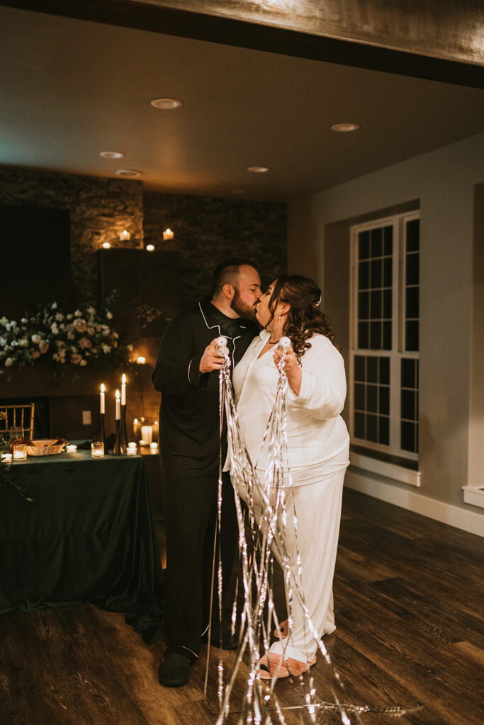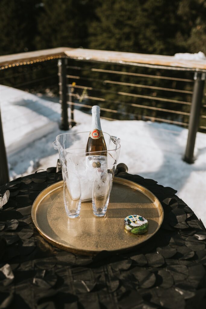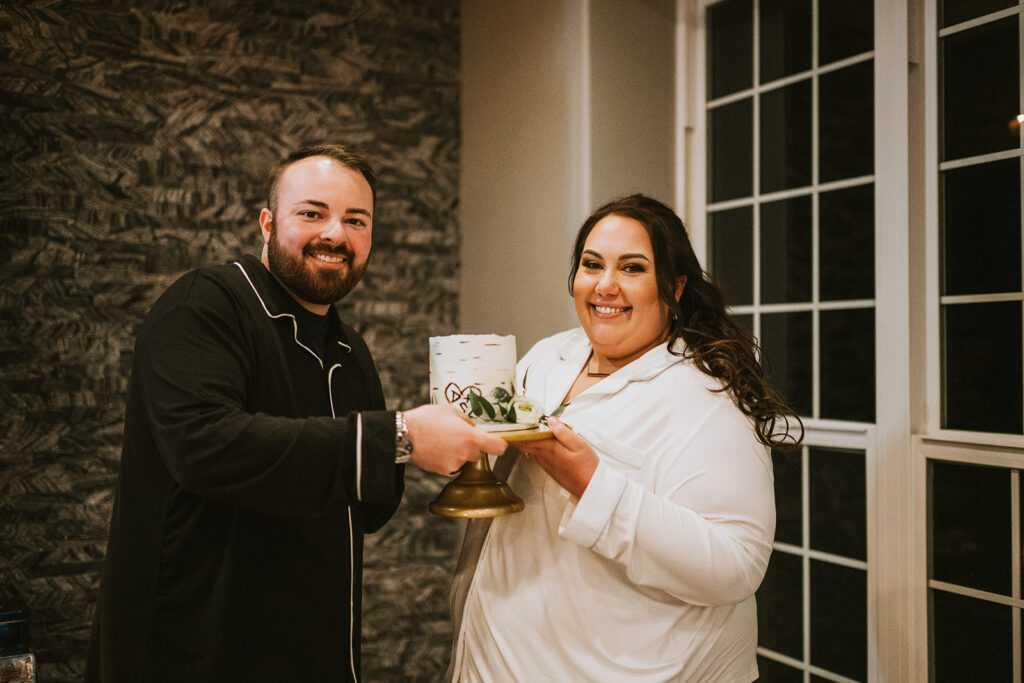 We set up a custom mocktail bar that was curated specifically for the couple. It featured lots of fresh fruit and fun ice cubes. Even with a mocktail, you can make it just as special and unique as any cocktail! A private chef (Wes, with Masters Catering) catered an incredible meal that included Alaskan King Crab, another perk of eloping how you want! Before the meal, the couple shared their first dance to “Grow Old” by Florida Georgia Line. Later they changed into their matching pajamas, enjoyed their wedding cake, and played Mario Cart! A very unique and perfect ending to their Alaska elopement!