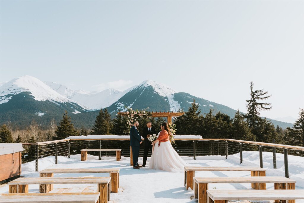 As Deanna and Scott began planning their wedding from Michigan, they quickly realized they needed an Alaska elopement planner. Since they decided to elope with no guests, they wanted to keep their wedding day and planning as stress-free as possible. Even with an elopement, they still wanted fun and personal wedding elements. It was important to have a meaningful ceremony, lush florals, a great meal, and of course, cake!