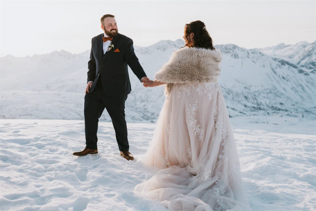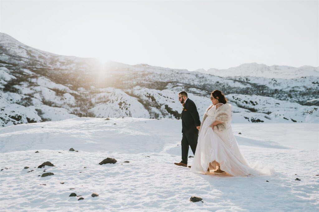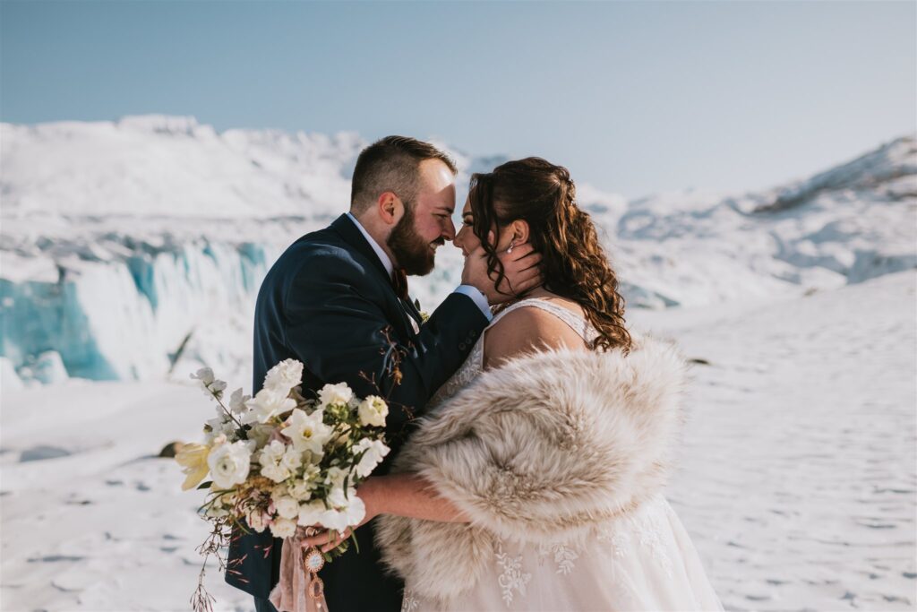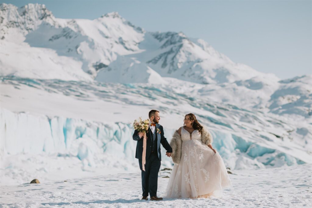 As an Alaska elopement planner, we are able to provide the best recommendations for YOU and what you envision for your day. We thoughtfully found all of the vendors to make this portion of the day happen and to ensure the couple was comfortable. The helicopter tour was amazing for these two! And since we are experienced in Alaska, we know exactly what you will need. From hand warmers, to the right gear, to your personal things like signage and sunglasses, we take care of it. We handle all of this so you don’t even have to think about it and can simply enjoy your day while out experiencing Alaska.