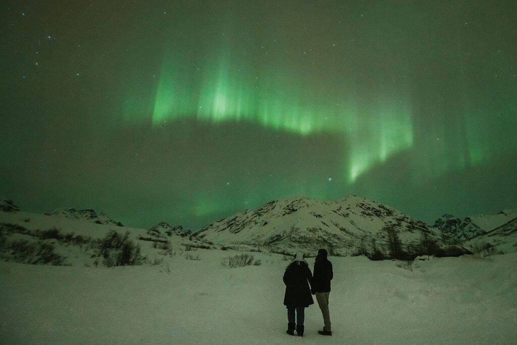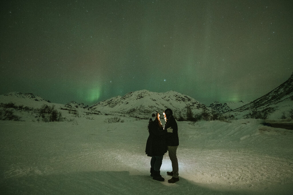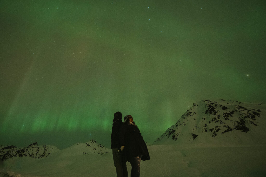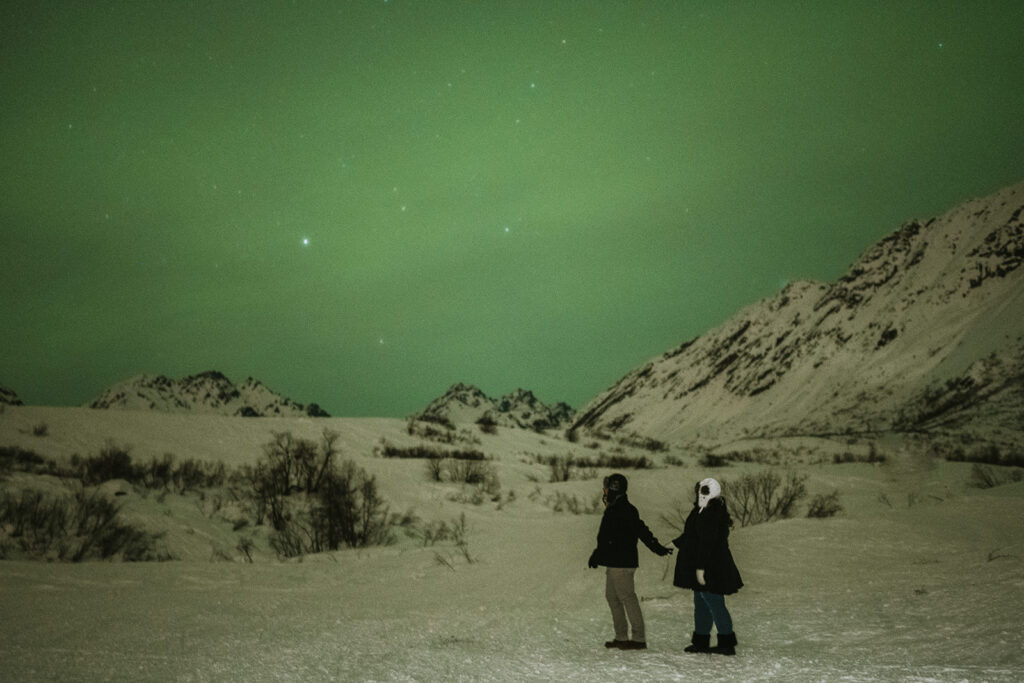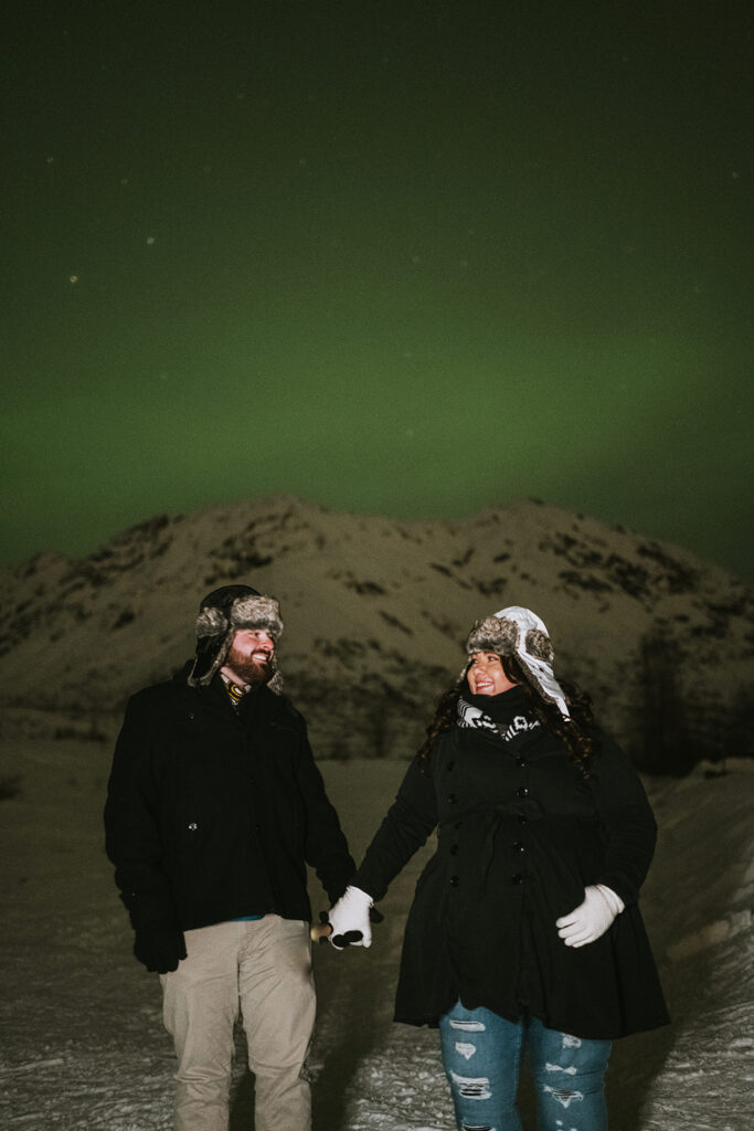 They knew they wanted to see the Northern Lights and had scheduled an additional day to take photo with Donna at Donna Marie Photography. So once they were out, they headed to Hater Pass to adventure with a photoshoot under the Northern Lights. The photos are absolutely magical!