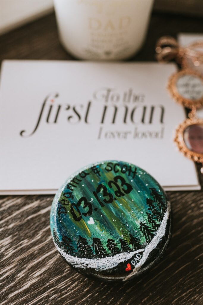 They included many personalized details and one of the most important was the painted rock with their wedding date. Painting rocks was a special thing that Deanna did with her dad and they included some that they painted in their wedding day to honor her dad.
